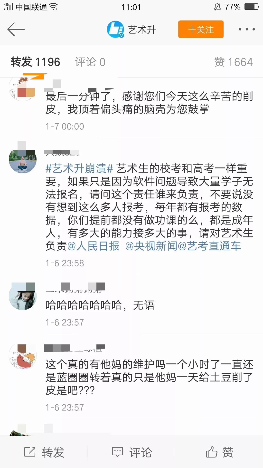 有网友感慨,没有金刚钻就别揽瓷器活,一个第三方平台几乎垄断了艺考报名通道,却在掉链子时迟迟无法修复,简直是拿艺考生的前途命运当儿戏。