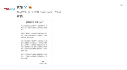 为了营造更加良性的产业环境,破除流量喧嚣,回归内容本心,优酷宣布即日起全站关闭前台播放量显示。