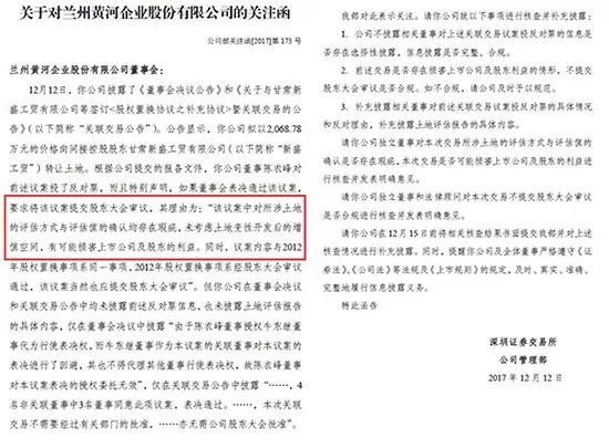 董事质疑兰州黄河贱卖土地 深交所发函关注(资料来源:深交所)