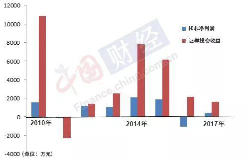 2010-2017年兰州黄河扣非净利润和证券投资收益对比(制图:中国网财经 刘小菲)