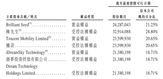 公司股东包括创始人兼CEO陈湘宇的旗下基金Brilliant Seed,持股21.25%;腾讯子公司Tencent Mobility Limited,持股20.65%;关嵩旗下Bubble Sky,持股4.12%;雷俊文旗下Instant Sparkle Limited,持股为2.40%。