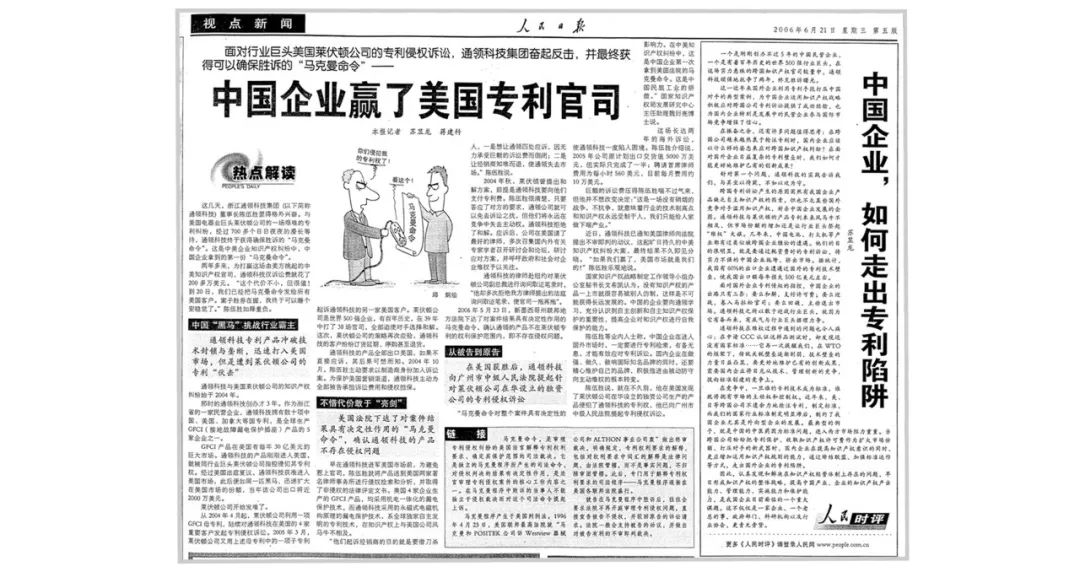 经过2年多的艰苦诉讼,通领科技花费1.6亿元最终打赢了所有官司。2006年5月23日,美国法院下达了长达33页的"马克曼命令",明确表明通领科技的产品没有侵犯莱伏顿公司的专利。