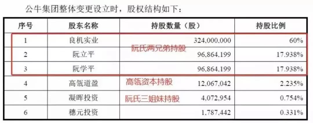 目前,公牛集团总股本为5.4亿股,最新股东名单中,第一大股东为良机实业,持股60%,阮立平和阮学平各持有良机实业50%的股份;作为自然人,阮立平与其弟弟阮学平各持有公牛集团股份17.938%;两人直接或间接控股公牛集团股份逾95.876%。