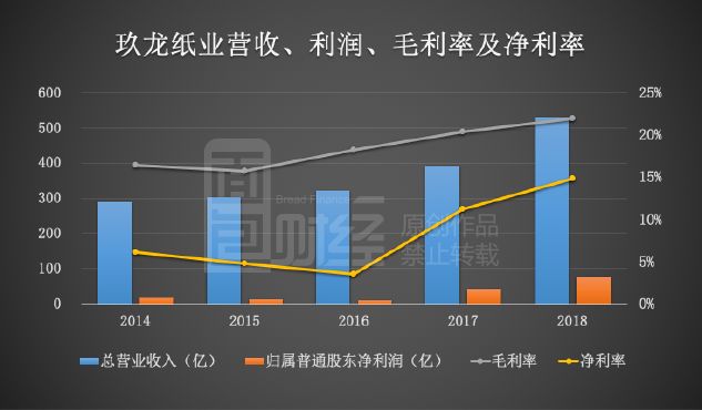 玖龙纸业成立于1995年,是亚洲最大的箱板原纸生产商,产品包括卡纸(牛卡纸、环保牛卡纸、白面牛卡纸及涂布牛卡纸)、高强瓦楞芯纸、涂布灰底白板纸、环保型文化用纸(包括双胶纸、复印纸等)以及特种纸。2018财年(2017年7月初至2018年6月底),前三者的营收占比达到了94.2%。
