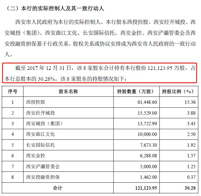 然而,西安市政府通过8家股东合计持有西安银行30%的股份。