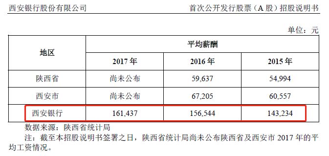 招股书显示,到2017年底西安银行的员工数量为3266人,2017年的平均薪酬为16.14万元。