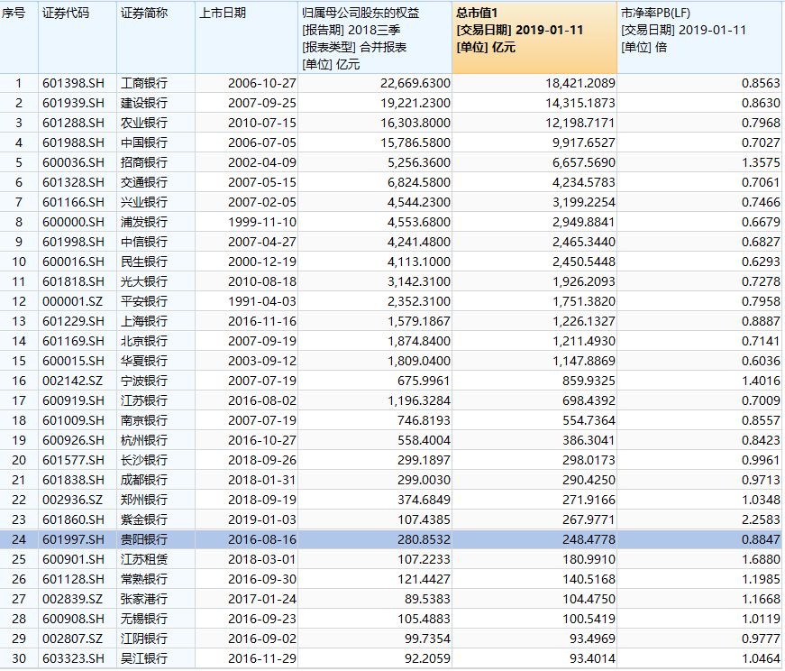 目前,郑州银行、贵阳银行的总市值分别为272亿元(A+H股)、248亿元,A股的市净率分别为1.03倍和0.88倍。