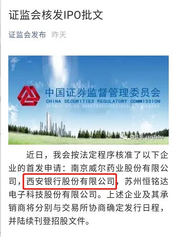 最近几年,A股市场掀起城商行和农商行上市潮。元旦过后农商行紫金银行上市,城商行青岛银行刚完成发行上市在即,如今又一家城商行西安银行又获得批文。